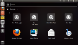 Other new Unity Launcher features in 11.04 include full keyboard navigation support and right-click context menu quick-lists. Users can search for applications and files using the Lenses implementations. Furthermore, by pressing the Super or Windows key, users can launch the "Dash" start screen for various common tasks, including search; alternatively, clicking the Ubuntu logo in the top-left corner of the screen will also open the "Dash".