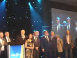 The CEO of the Internet Society, Lynn St.Amour, was presented with a lifetime achievement award. Visibly moved, she said "I'm finding it very hard to accept this, because this whole project is about you. And I'm not finished after all." With a wink, she added: "Unless this is a message for me."