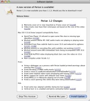 More details about the release can be found in the change log. Perian 1.2 is available to download (direct download) for Mac OS X 10.4.7 or higher. Users that currently have Perian installed can use the built-in update function by selecting "Check For Updates" under the General tab of Perian's preference pane under System Preferences. Perian is released under version 2.1 of the GNU Lesser General Public License (LGPLv2.1).