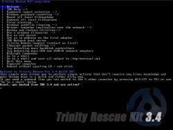 Trinity Rescue Kit 3.4 uses the latest 2.6.35 Linux kernel and features an updated, easy to use scrollable text menu that provides access to its most commonly used features. Using the NTFS-3G read/write driver, TRK includes full NTFS file system write support. Other features include an application for removing various temporary files from a system, full proxy server support and several updates to the included packages. Five anti-virus programs with online update capabilities are included, integrated into a single uniform command-line, as well as two rootkit detection utilities.