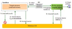 Technically, Adobe's sandbox is based on a Microsoft technology known as Microsoft Office Isolated Conversion Environment (MOICE) which is already in use in Office 2010. A broker process processes all write queries from the sandbox and decides whether or not they are legitimate based on a defined set of rules. Adobe states that the broker process and sandbox code has been kept very lean and has been tested by external penetration testers. Arkin has confirmed that Adobe is also considering using the sandbox to trap read access and thus block access to sensitive data on the system.