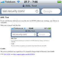 Recurity Labs has created a test page to demonstrate the flaw in Apple's iOS that was disclosed yesterday. Only users who are already running the current version, iOS 4.3.5, are immune to the problem.
