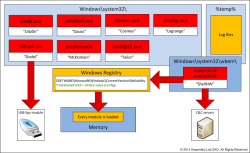 Like Duqu and Flame, Gauss features an auto-destruct mechanism – after 30 executions of the payload from a USB flash drive, the trojan will automatically delete itself to avoid being detected by anti-virus programs.