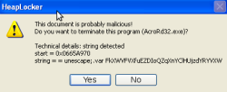 Here, dubious JavaScripts which produce unescaped character strings have triggered HeapLocker into action.