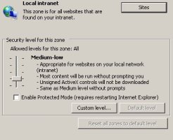 In IE8, by default, protected mode for all the local intranet sites is disabled.