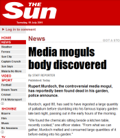 After having stated at the end of June its intention to disband, the hacker group LulzSec has claimed responsibility for hacking the web site of The Sun newspaper, owned by News International. Visitors to the site late on 18 July were redirected to a fake page carrying a news story stating that Rupert Murdoch's body had been discovered after he had apparently committed suicide.