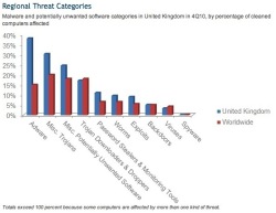 In the United Kingdom, Microsoft found that an average of 8.7 computers out of every 1,000 tested in the fourth quarter of 2010 were infected with malware – this is directly inline with the worldwide Q4 2010 average score of 8.7. By comparison, the number of infected computers in Germany is still below the global average, in spite of more than doubling from 2.2 in the fourth quarter of 2009 to 5.3.