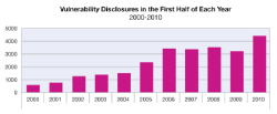 More vulnerabilities were discovered in the first half of 2010 than ever before.