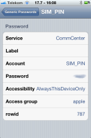 The H's associates at heise Security were able to easily and quickly locate the SIM_PIN entry with the 4 correct digits in the keychain. The entry remains in the keychain until the device is fully powered down. This fact is also documented in Apple's recent security overview; apparently, Apple uses the entries to avoid having to request the SIM card's PIN code from users after a crash.