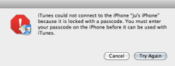 How it should be - the locked iPhone refuses the connection from a Mac.