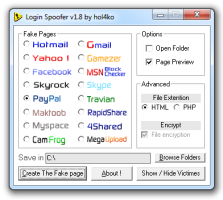 Login Spoofer creates counterfeit log-in pages for many popular web services.